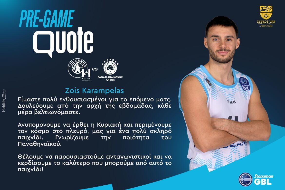 Την άποψή του για την εντός έδρας αναμέτρηση του Κολοσσού H Hotels Collection απέναντι στον Παναθηναϊκό AKTOR (19/10, 16:00), για την 3η αγωνιστική της Stoiximan GBL, μοιράστηκε ο Ζώης Καράμπελας. Η δήλωση του Ζώη Καράμπελα στο www.kolossosbc.gr: «Είμαστε πολύ ενθουσιασμένοι για το...