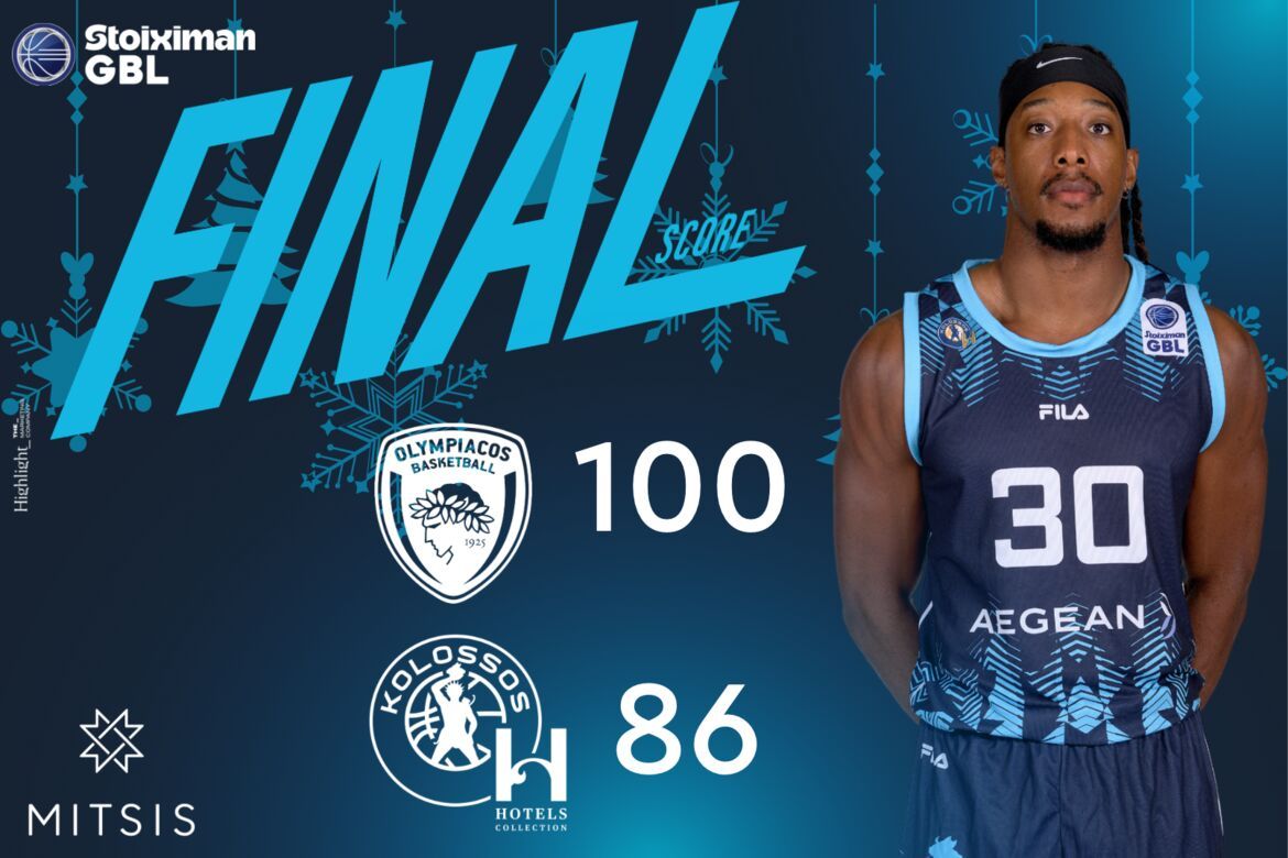 Ο Κολοσσός H Hotels Collection γνώρισε την ήττα με σκορ 100-86 από τον Ολυμπιακό, στο ΣΕΦ, για την 11η αγωνιστική της Stoiximan GBL. Υψηλό ρυθμό είχε από νωρίς η αναμέτρηση, με την ομάδα μας να είναι μπροστά (17-19), στα πρώτα πέντε...