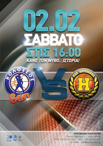 Η Κ.Α.Ε. ΒΑΠ Κολοσσός ανακοινώνει ότι τα εισιτήρια του αγώνα με τον Ηλυσιακό (Σάββατο 16:00) θα διατίθενται την ημέρα του αγώνα από τις 14:00 στο εκδοτήριο που βρίσκεται έξω από το «Βενετόκλειο». Η γενική είσοδος έχει οριστεί στα 10 ευρώ....