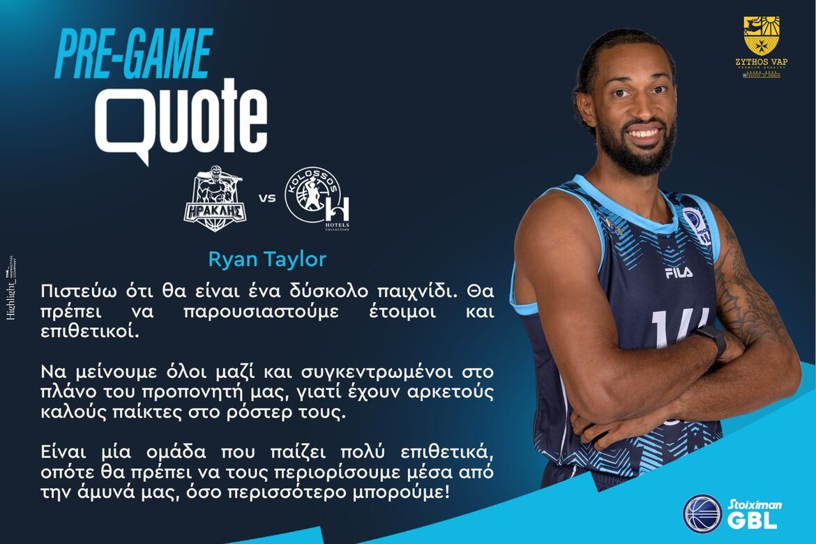 Την άποψή του για την εκτός έδρας αναμέτρηση του Κολοσσού H Hotels Collection απέναντι στον Ηρακλή (16/11, 13:00), για την 7η αγωνιστική της Stoiximan GBL, μοιράστηκε ο Ράιαν Τέιλορ. Η δήλωση του Ράιαν Τέιλορ στο www.kolossosbc.gr: «Πιστεύω ότι θα είναι ένα δύσκολο...