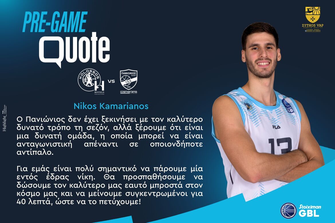 Την άποψή του για την εντός έδρας αναμέτρηση του Κολοσσού H Hotels Collection απέναντι στον Πανιώνιο Cosmorama Travel (1/11, 16:00), για την 5η αγωνιστική της Stoiximan GBL, μοιράστηκε ο Νίκος Καμαριανός. Η δήλωση του Νίκου Καμαριανού στο www.kolossosbc.gr: «Ο Πανιώνιος δεν έχει...