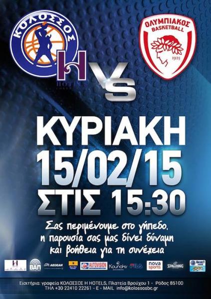 Η Κ.Α.Ε. Κολοσσός H Hotels ανακοινώνει ότι αύριο, Πέμπτη 5 Φεβρουαρίου, ξεκινάει η προπώληση των εισιτηρίων για τον αγώνα με τον Ολυμπιακό (15/02/15, 15:30), από τα γραφεία της Κ.Α.Ε. (πλατεία Βρούχου, τηλ. 22410-22261). Οι μέρες και ώρες της πώλησης των...